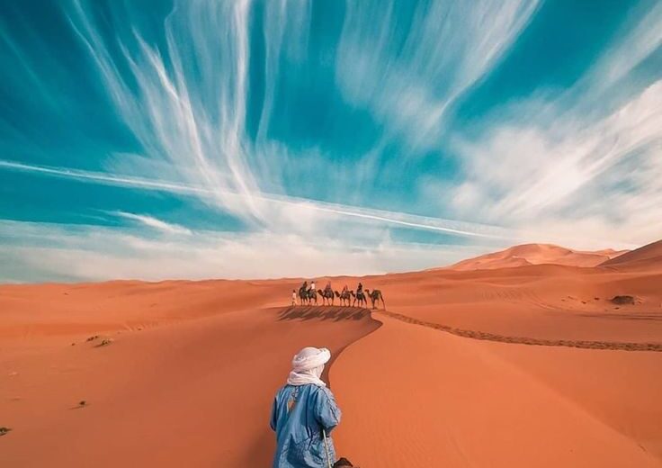 Situé dans le sud-est du Maroc, l'Erg Chebbi est l'une des zones de dunes de sable les plus célèbres du désert du Sahara. Le village voisin de Merzouga sert de porte d'entrée à des expériences désertiques inoubliables, telles que les treks à dos de chameau, le sandboarding et l'observation des étoiles.